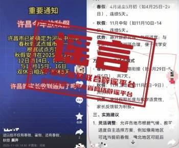 | 来源:中国互联网联合辟谣平台 ![]() 2025年11月6日 ![]() 谣言:河南、安徽等地中小学今年放秋假? ![]() 真相:近日,河南、安徽部分自媒体平台发布关于中小学春秋放假的信息,声称“许昌市已被确定为河南中小学春秋假试点城市之一”“周口市中小学2025年秋假时间安排如下”“芜湖市中小学将在11月12日至14日放首个秋假,连周末共5天”,引发关注。对此,河南许昌、周口及安徽芜湖教育部门作出回应:并无放秋假的安排,网传消息均为谣言。中小学放假安排需严格遵循国家教育方针政策及当地教育部门的统一部署,结合本地教育教学实际统筹规划。如需了解相关安排,请通过属地教育部门官方网站,切勿轻信、传播未经官方确认的“小道消息”。(来源:“清朗河南”微信公众号、@大河网、安徽网络辟谣平台) 科普:熬夜到什么程度可能会猝死?医生划出4条红线 详情:熬夜本身不会直接导致猝死,但会让猝死风险飙升。熬夜引发的心源性猝死不是突然发生的,如果出现以下4种情况,必须立刻停下手中的事,赶紧休息。 1.连续3天以上,每天睡不足4小时 这相当于让心跳在高速档连续运转72小时,心脏每跳一次,心肌细胞就会经历一次收缩与舒张的磨损。正常睡眠时,心肌细胞能得到40%的修复,而当人体缺觉时,修复几乎停滞。有研究显示,这种状态下心肌耗氧会增加3倍、血管痉挛的概率提升至平时的5倍。 2.通宵24小时后不补觉 曾有实验记录,健康成年人通宵后血压会剧烈升高15~20毫米汞柱、血液黏稠度增加20%。此时哪怕只爬一层楼,都可能让心脏的负荷突破极限。 3.长期每天睡不够6小时 熬夜会让血压中的炎性因子增多,如果再叠加高血压、糖尿病等会损伤血管内皮的慢性病,会加速斑块形成。更危险的是,肥胖、抽烟,饮食重盐、重辣等因素会让斑块变得更脆弱,随时可能破裂堵塞血管。 4.熬夜+白天高压工作/运动 熬夜后交感神经本身处于亢奋的状态,若再被工作的压力、崩溃的情绪、剧烈的运动等刺激,去甲肾上腺素会瞬间飙升。 如果熬夜后累到起床都费劲,休息12小时后仍没有缓解,胸口像被巨石压住般闷痛,有时还会放射到左肩、下巴,莫名冒冷汗、手脚冰凉,伴随恶心想吐,走几步路就喘得厉害,感觉空气都不够用,这些都可能是心梗的前兆,此时坐下来休息,立刻拨打120,或许能救命。(来源:“生命时报”微信公众号) 通报:陈某编造充“劣质电”致车辆自燃谣言,被北京警方抓获! 详情:近日,北京顺义警方接报,有人在网上编造谣言,称某品牌新能源汽车充“劣质电”,引发一起车辆自燃。警方立即开展调查,将编造谣言的陈某抓获。据陈某交代,他为了恶搞,利用网传某品牌汽车自燃图片,杜撰车辆充“劣质电”导致自燃,编排后在某短视频平台上发布,引发众多网友关注讨论。最终,陈某被顺义警方依法采取刑事强制措施,案件正在进一步侦办中。(来源:北京网络举报、北京日报微信公众号) 通报:四川公布5起涉企网络谣言典型案例 详情:近期,网上出现以“断章取义”“嫁接拼凑”“标题党”等方式炮制虚假消息,抹黑造谣诋毁企业和企业家的谣言信息,扰乱网络秩序。四川省网信部门持续加大监测和处置曝光力度,现通报5起典型案例: 案例1:片面解读企业公告,诋毁企业形象声誉 某财经微信公众号在四川省一商业银行即将上市的关键阶段,发布不实文章,片面解读该银行招股说明书数据,使用错误的数据统计口径得出错误结果,诋毁企业形象,严重侵犯其合法权益。 案例2:发布“标题党”文章,抹黑企业品牌形象 四川省两大国营企业依法依规推进战略重组,某财经自媒体曲解新闻原意,以国企并购重组为噱头,错误解读其经营方式及收购政策,以《四川能源“巨无霸”合并后“首购”,9.29亿买风电企业!》为标题发布不实信息,误解企业经营策略,对企业正常经营造成负面影响。 案例3:恶意断章取义,抹黑企业科技创新 一些水军抖音账号将四川省一大型民营企业领导接受采访时提及的传统产业智能化升级等表述,恶意篡改、断章取义,批量制作内容高度相似、严重失实的文章和视频在多个平台发布,抹黑企业家形象和企业科技创新。 案例4:夸大企业家薪酬,诋毁企业家声誉 某财经微信公众号采用断章取义、片面解读、虚构数据等手法,对四川省一航天与人工智能科技企业招股说明书披露内容进行歪曲性解读,夸大该公司董事长薪酬,对企业家个人声誉及企业上市造成不良影响。 案例5:歪曲解读企业经营策略,严重影响企业出海发展 某主流财经媒体持续发布多篇报道,唱衰四川省一锂矿企业在海外投资遇挫,片面解读企业经营策略,主观臆断企业家决策,凭空捏造企业家对锂行业无浓厚兴趣、中国企业阻止外国公司国有化进程等诸多不实。经查,文中诸多表述与事实不符,严重侵犯企业合法权益。 上述网络谣言已被相关部门依法依规处理。(来源:四川互联网举报辟谣平台) 统筹:屈绍辉 策划:董晓 文字:吴炎 设计:肖丽丽 尹路 |